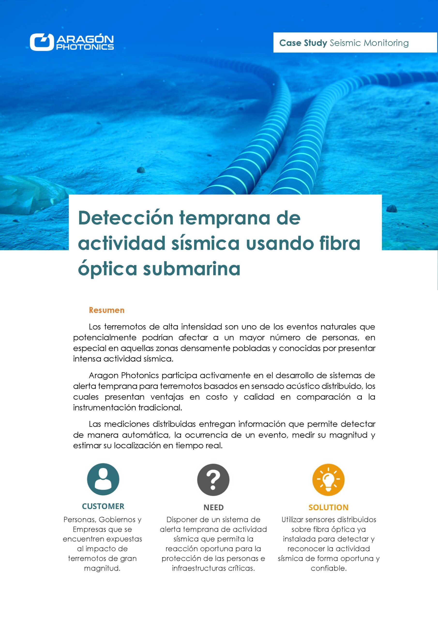 Aragon Photonics participa activamente en el desarrollo de sistemas de alerta temprana para terremotos basados en sensado acústico distribuido, los cuales presentan ventajas en costo y calidad en comparación a la instrumentación tradicional.